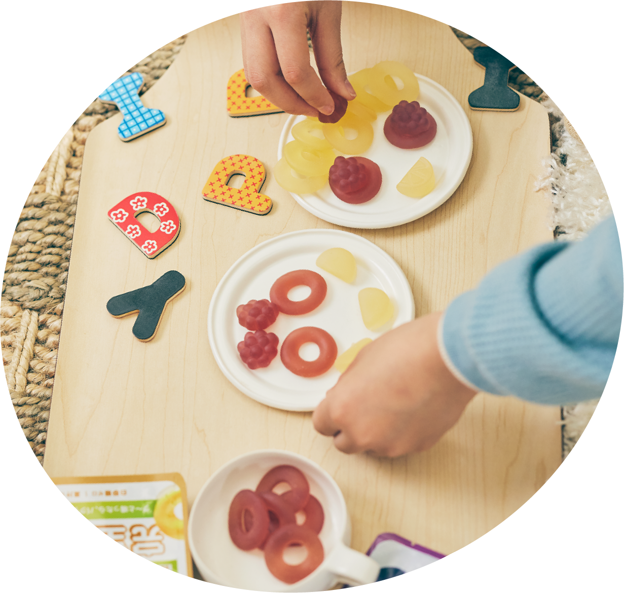 栄養成分上は2歳以下のお子さまにも問題はありませんが、グミなどのお菓子は噛む力がまだ十分でないお子さまの場合、誤飲リスクがあります。