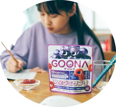 GOONAは、3歳以上のお子さまがご利用になることを推奨しています。 栄養成分上は2歳以下のお子さまにも問題はありませんが、グミなどのお菓子は噛む力がまだ十分でないお子さまの場合、誤飲リスクがあります。 2歳以下のお子さまが召し上がる際は、保護者の方が小さくちぎるなど、安全面をサポートしていただくようお願いいたします。