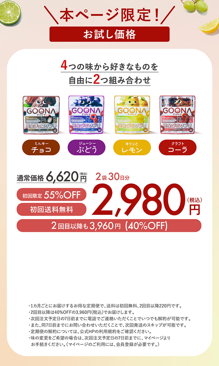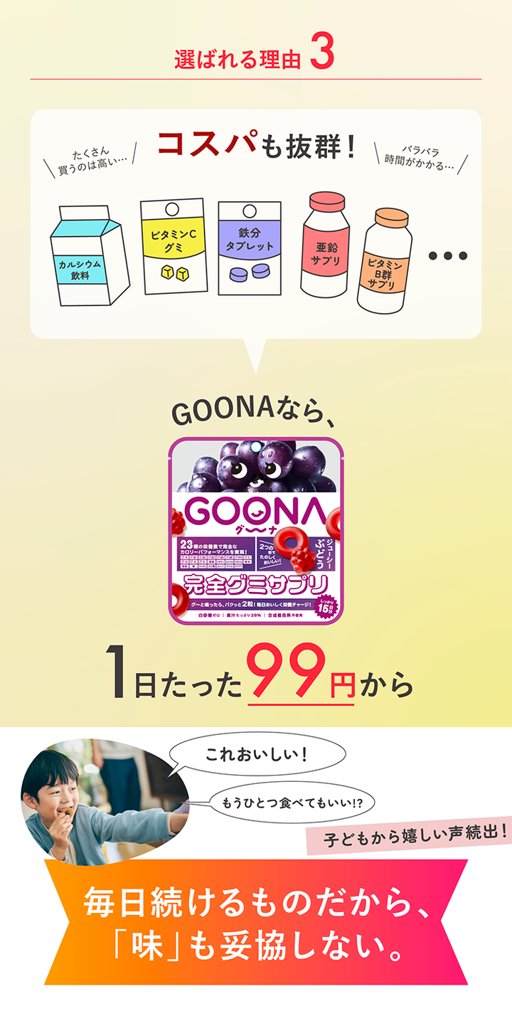 むしろGOONAは、毎日忙しく過ごしていて栄養バランスが乱れがち、でも重要な企画や商談・プレゼンなどでしっかり高いパフォーマンスを発揮したいという大人の方にこそ、特におすすめです。